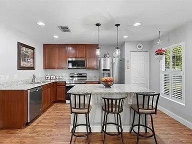 This is the one and it’s better than New! Come and see this impeccably maintained and well loved home in the desirable Hunters Ridge community. A BRAND NEW ROOF was installed July 10th 2025 and is ready to cover the new owner. Along with the new roof, this home also has a brand new Hot Water Heater, a transferable 3 year home warranty, and over $20,000.00 worth of recent thoughtful upgrades that include beautiful Luxury Vinyl Plank flooring, interior paint, landscaping, and even the gorgeous front door! The chef-inspired kitchen is a true highlight, featuring sleek granite countertops, an expansive kitchen island, and 43” solid wood cabinetry. Top-of-the-line stainless steel appliances complete the space, making this kitchen both beautiful and highly functional. The oversized primary bedroom offers ample space for a king-sized bed set, includes a spacious walk-in closet, and a luxurious en suite with a dual vanity, creating a perfect retreat. Step outside to enjoy the home’s exceptional curb appeal, enhanced by mature landscaping, a well-maintained irrigation system as well as ambient landscape lighting. The large backyard offers a wonderful space for entertaining, whether you’re hosting family gatherings, outdoor parties, or simply enjoying quiet moments in nature. A gate at the rear of the lot provides direct access to undeveloped woods, home to diverse local wildlife and a tranquil small lake. The Deer Creek community provides a range of amenities for active lifestyles, including two sparkling pools, tennis courts, and parks- all for a very reasonable HOA fee. Plus, the property is conveniently located near some of the area’s best schools, shopping, and Hospitals including being approximately one half of a mile to Pathways Elementary. Ormond Beach itself is a treasure, with its pristine beaches, world-class fishing, and easy access to top medical facilities. Whether you’re looking for outdoor adventure or simply a peaceful retreat, this home offers the perfect blend of convenience, comfort, and natural beauty.